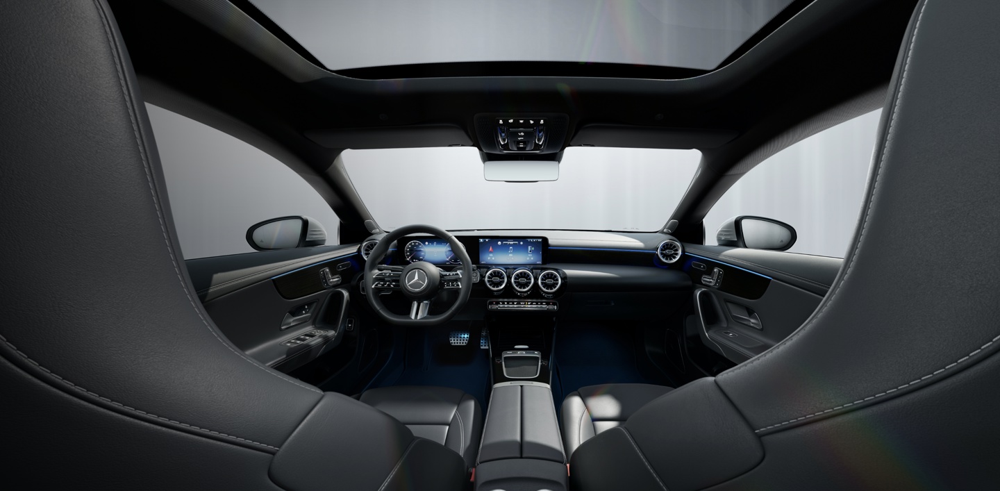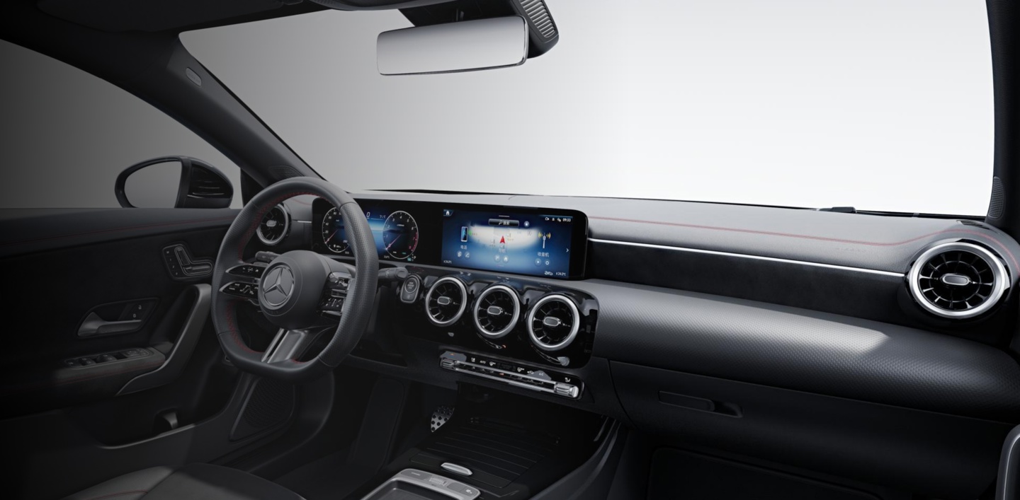 内饰部分,2025 款奔驰 CLA 四门轿跑车继续采用双联屏设计,并配备有平底式方向盘以及怀挡式换挡机构,预计 2025 款改款奔驰 CLA 四门轿跑车将继续使用相同的设计风格。