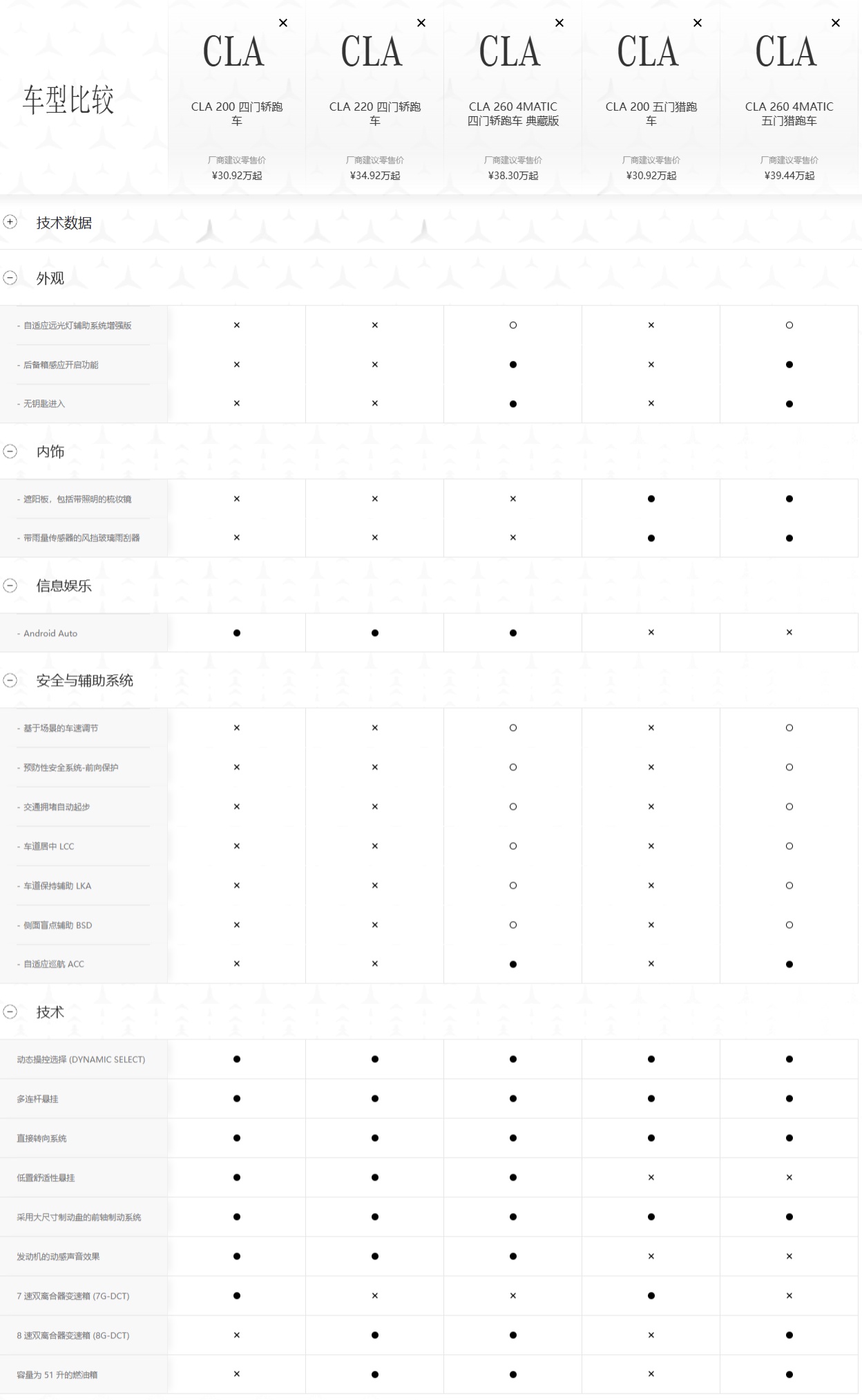 CLA 260 4MATIC 四门轿跑车典藏版:38.30 万元起