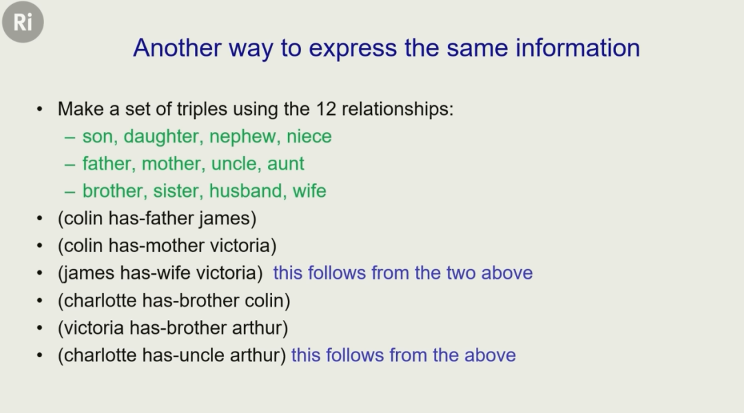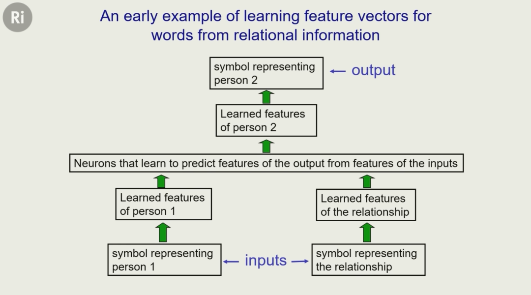由此,他训练出了一个神经网络,让它学会通过句子的前半部分(X has mother Y and Y has husband Z),来预测句子最后的词(X has father Z)。