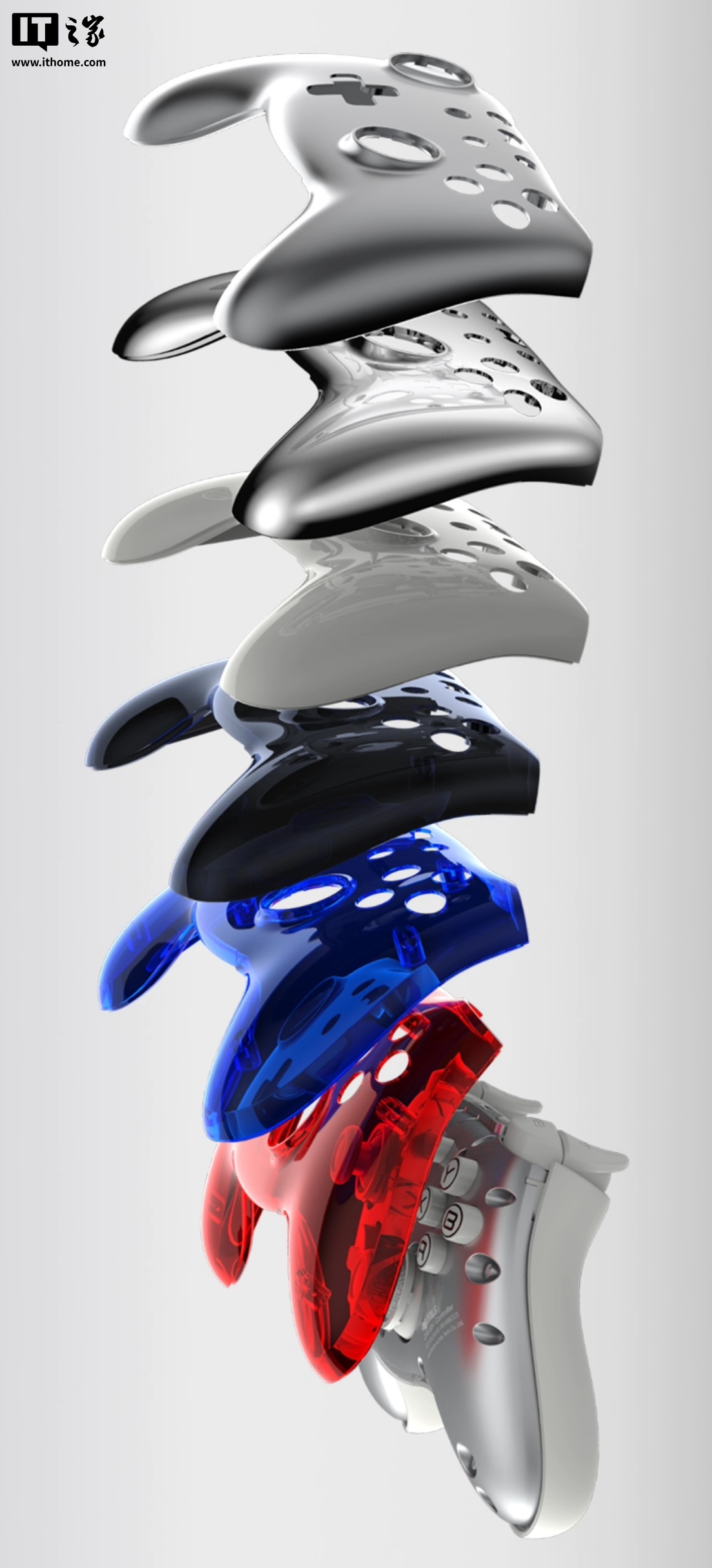 该手柄采用全合金一体成型,18 道电镀工艺,打造出类似镜面的外壳;采用模块化磁吸外壳,可更换不同颜色的壳体。