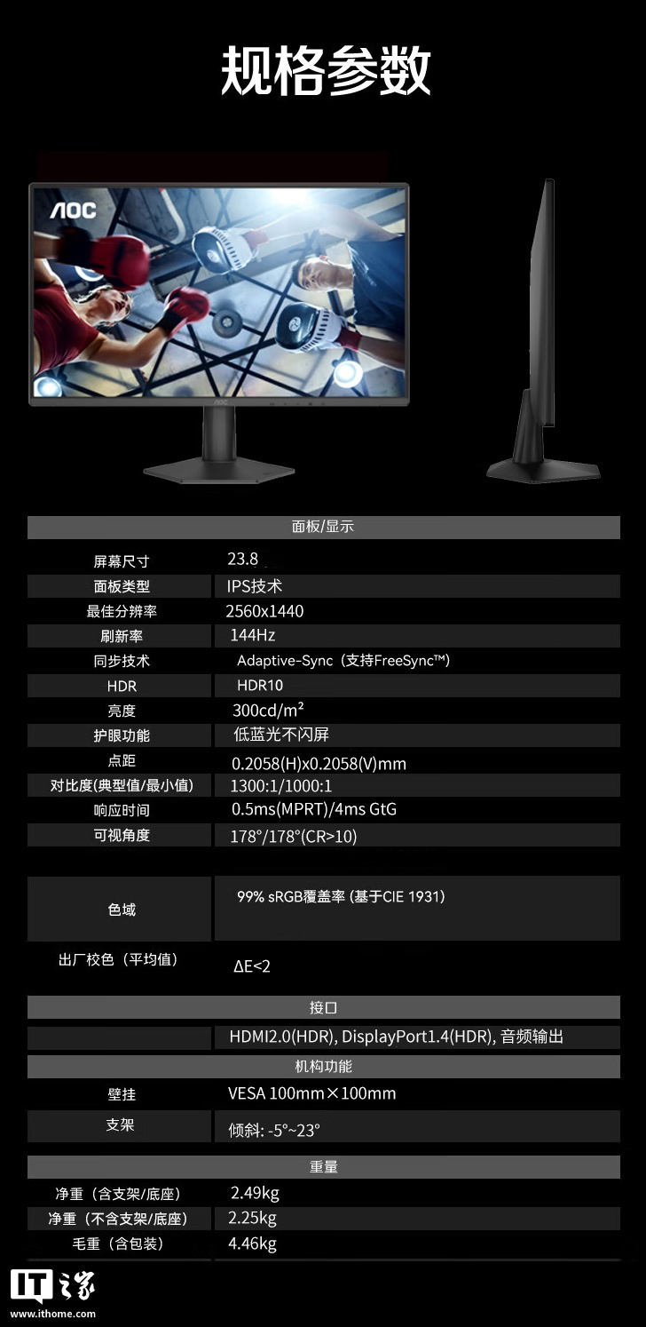 IT之家附显示器参数如下: