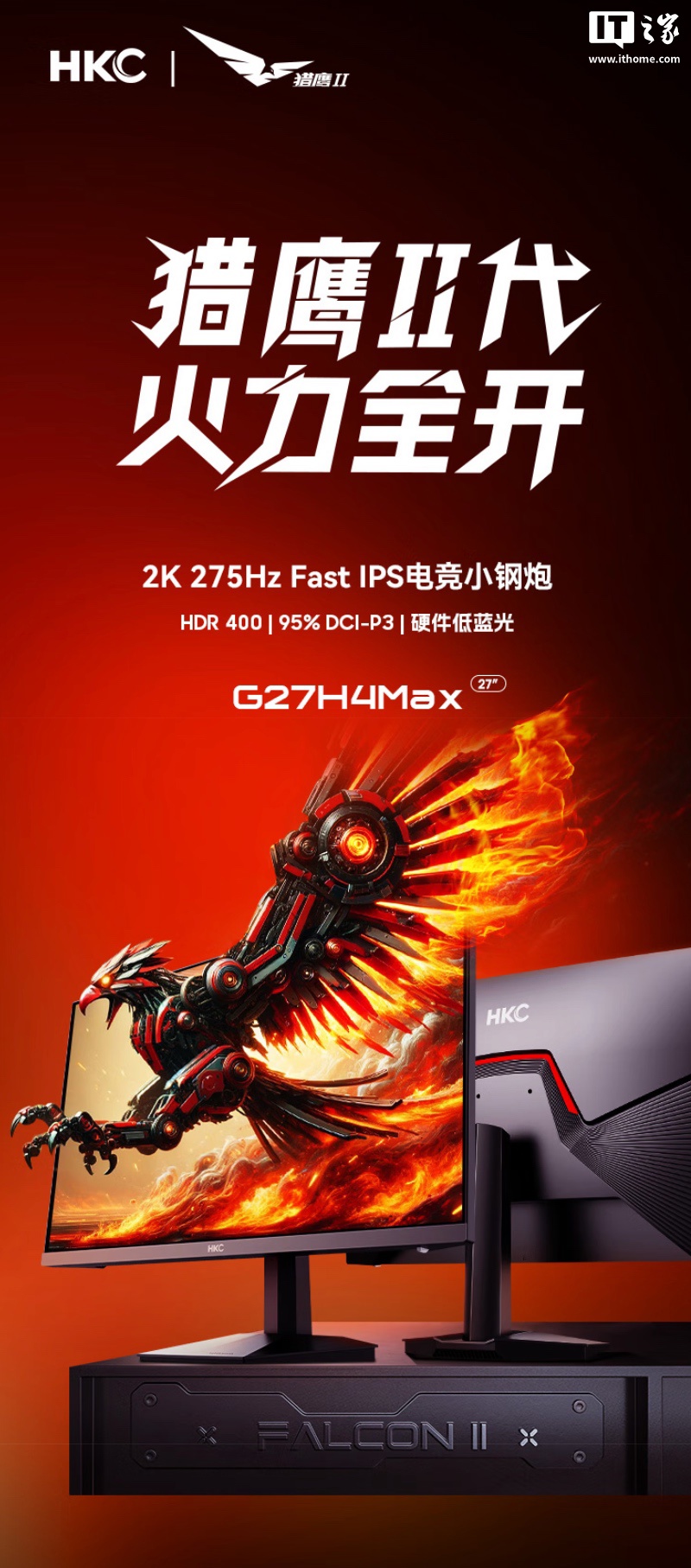 IT之家 7 月 27 日消息,HKC 现已在京东上架一款型号为“G27H4Max”的 27 英寸显示器,该机主打“2K 275Hz”,目前处于预售阶段,将于 7 月 31 日首销,首发价 1099 元。