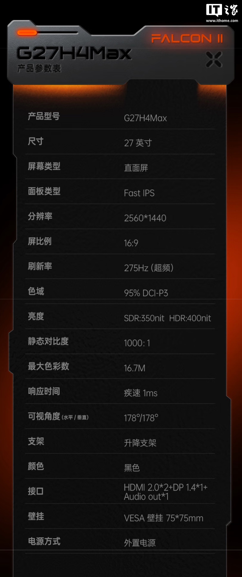 IT之家附显示器参数如下: