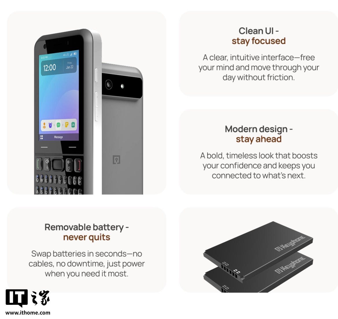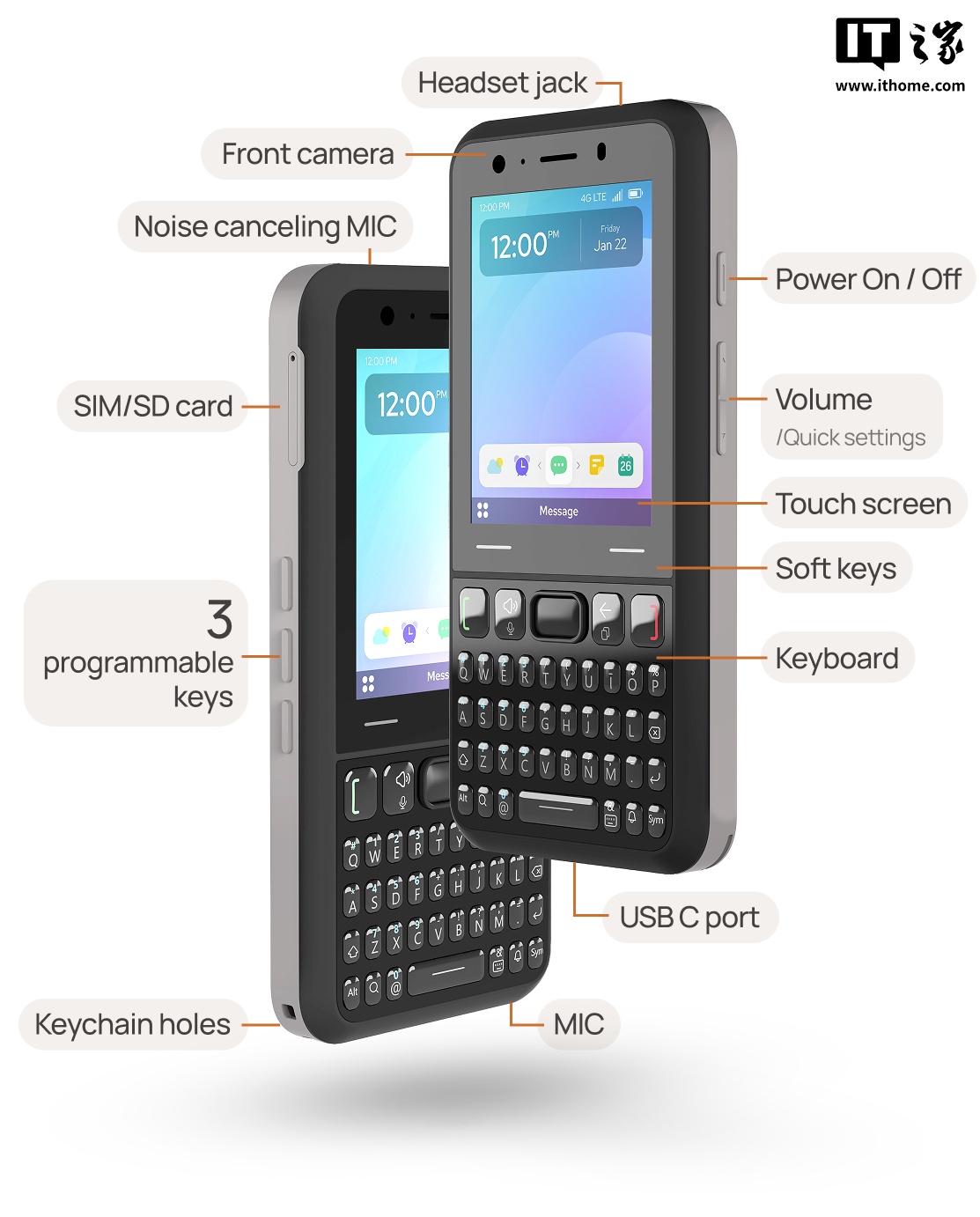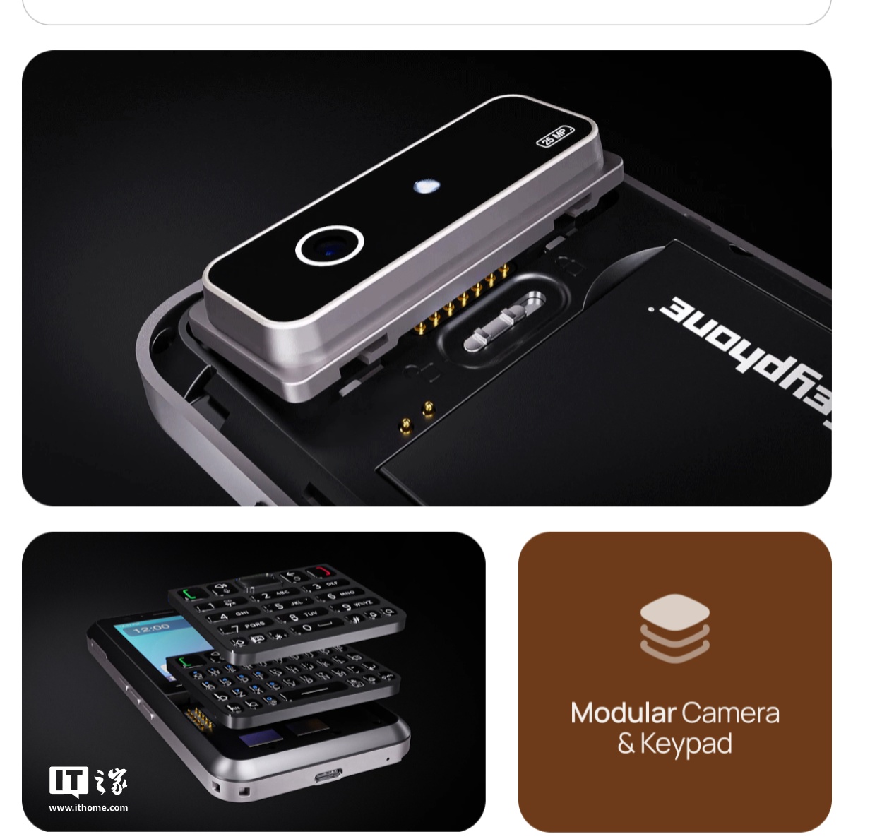 IT之家 7 月 28 日消息,一款名为 Keyphone 的模块化手机今日现身 Indiegogo 众筹平台,手机正面键盘处和背面摄像头处均可拆卸,让用户自由选择 T9 键盘/全键盘/全触屏。