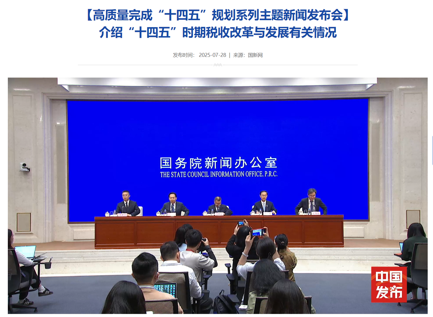 IT之家 7 月 28 日消息,国务院新闻办公室今日上午 10 时举行“高质量完成‘十四五’规划”系列主题新闻发布会,请国家税务总局局长胡静林、副局长王道树、副局长蔡自力、总经济师兼新闻发言人荣海楼介绍“十四五”时期税收改革与发展有关情况,并答记者问。