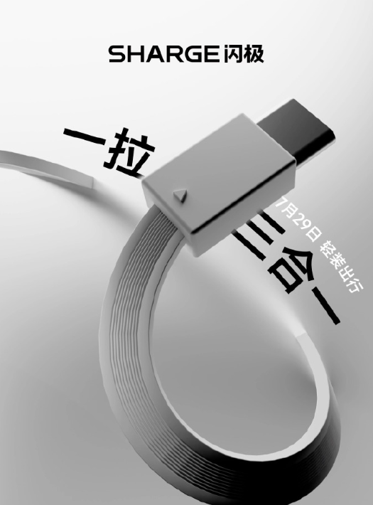 IT之家 7 月 28 日消息,闪极今日预热一款唱片三合一充电宝,将于明日发布。从官方海报来看,这款新品预计采用伸缩线设计。