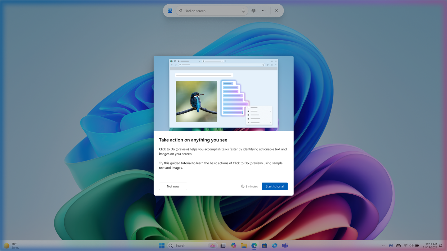 微软针对 Windows 11 AI+ PC 设备,推出了新的 Click to Do 教程。用户首次启动“点击执行”后,系统会提供快速交互式教程,向用户展示如何更快地完成任务。在本教程中,用户将对文本和图像执行作,因此您将了解如何快速获取大块文本的摘要或从图像中删除背景。您可以随时通过选择 ...,然后选择 " 开始教程 " 来重新访问本教程。