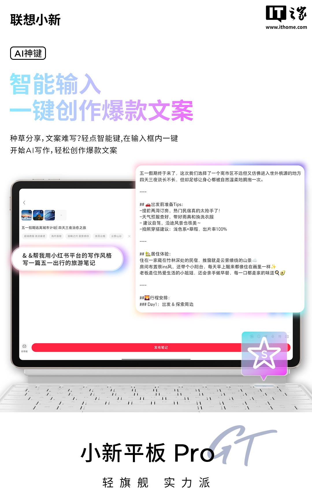 另外,联想小新平板 Pro GT 还支持 AI 妙笔、AI 神键等功能。