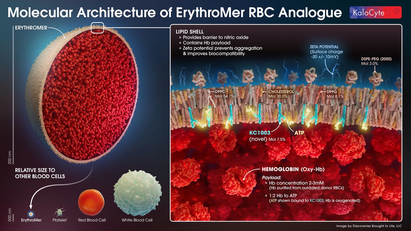 这种“速溶血粉”的关键成分是在血液中起到输氧作用的血红蛋白。研究人员利用球状脂肪结构包裹提取的血红蛋白,避免血红蛋白暴露在外出现化学反应被转化为对器官潜在有毒物质,脂肪结构在这里起到了与人体红细胞类似的作用。