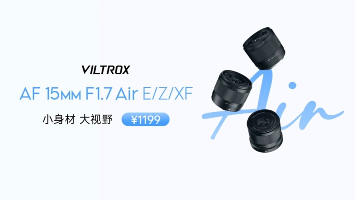 据唯卓仕介绍,这款镜头体积较为小巧,可轻松装进包包里,其 15mm 的焦段补齐了 Air 系列半画幅广角焦段,等效全画幅后焦距大约为 22mm,视角较广,适合拍摄风光、大合照等。