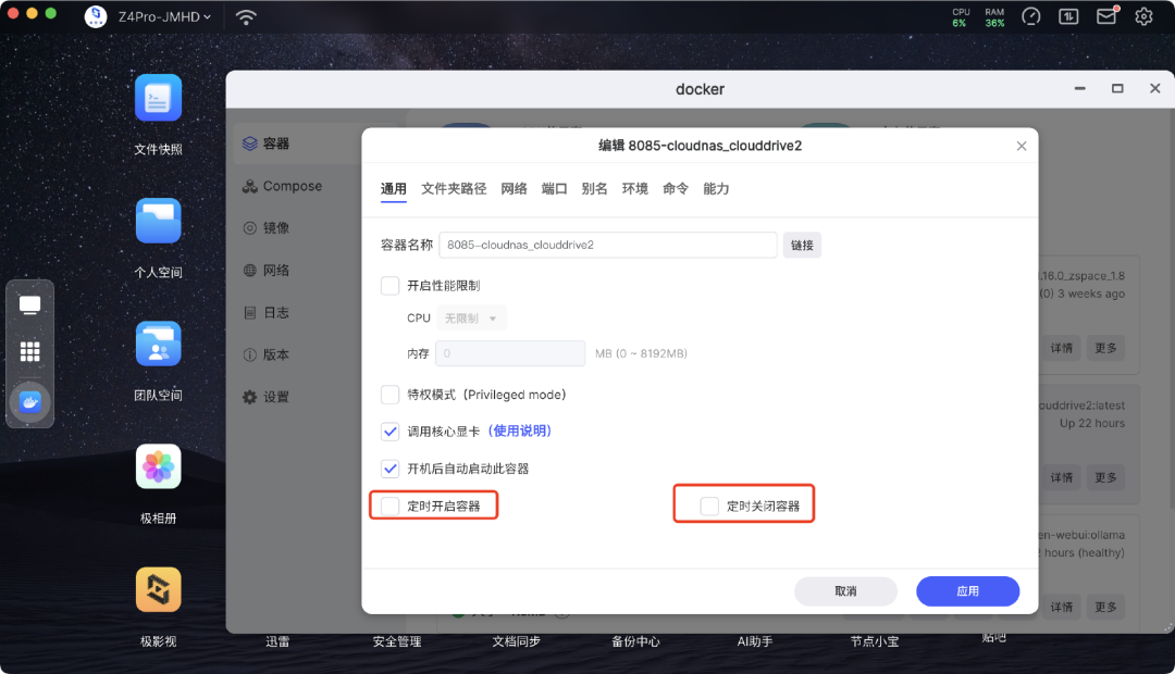 电脑端 Docker 容器增加定时启动、关闭功能