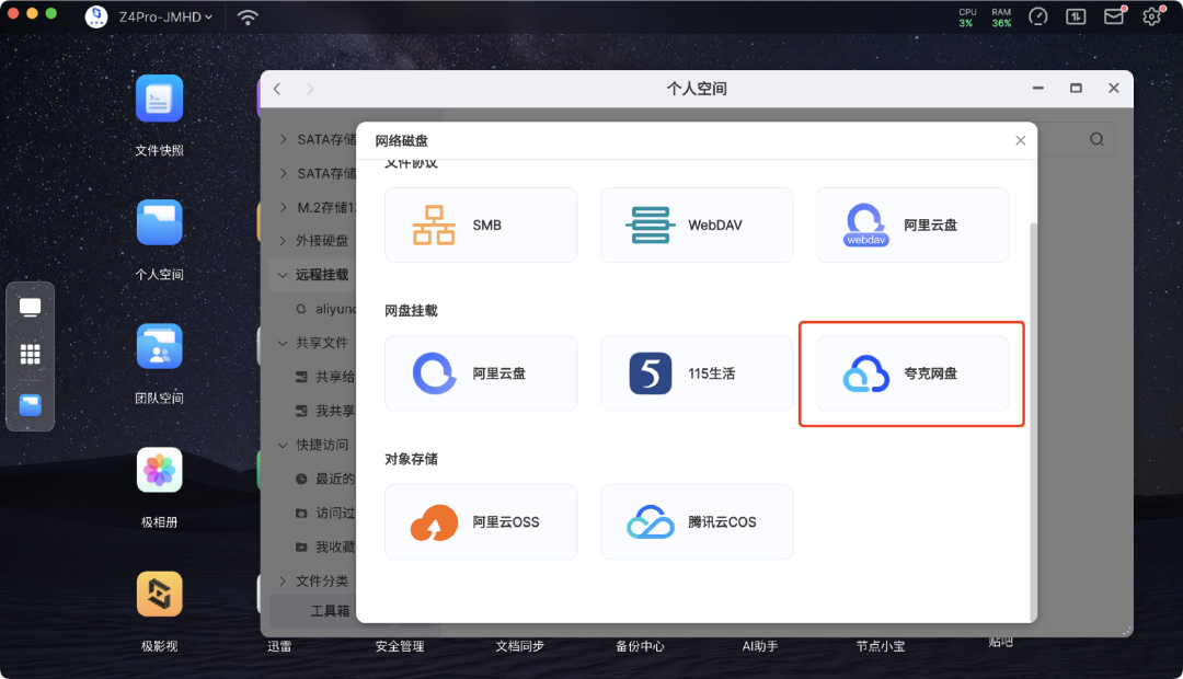 上线夸克网盘挂载,支持添加到极影视直接播放