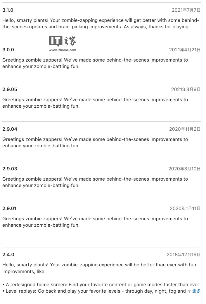 IT之家 7 月 30 日消息,据IT之家小伙伴投稿,《植物大战僵尸 1》游戏于本月(7 月 15 日)在苹果 App Store 发布 3.10.1 版本更新,支持了快进功能,玩家可使用 2 倍速 / 3 倍速,在游戏中更快速地守护花园。