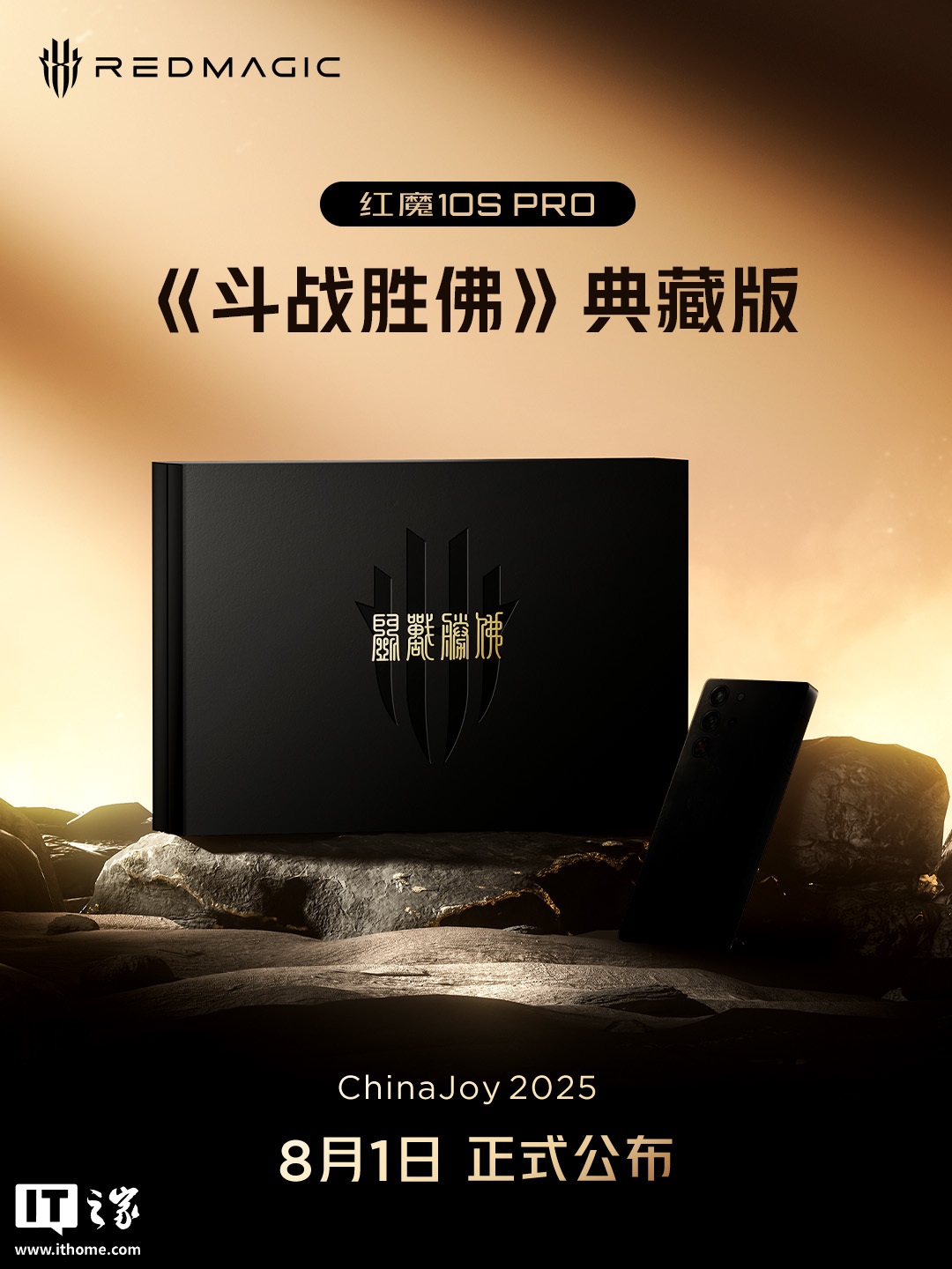 IT之家 7 月 31 日消息,红魔游戏手机官方今日宣布,红魔 10S Pro《斗战胜佛》典藏版将于 8 月 1 日在 ChinaJoy 2025 正式公布。