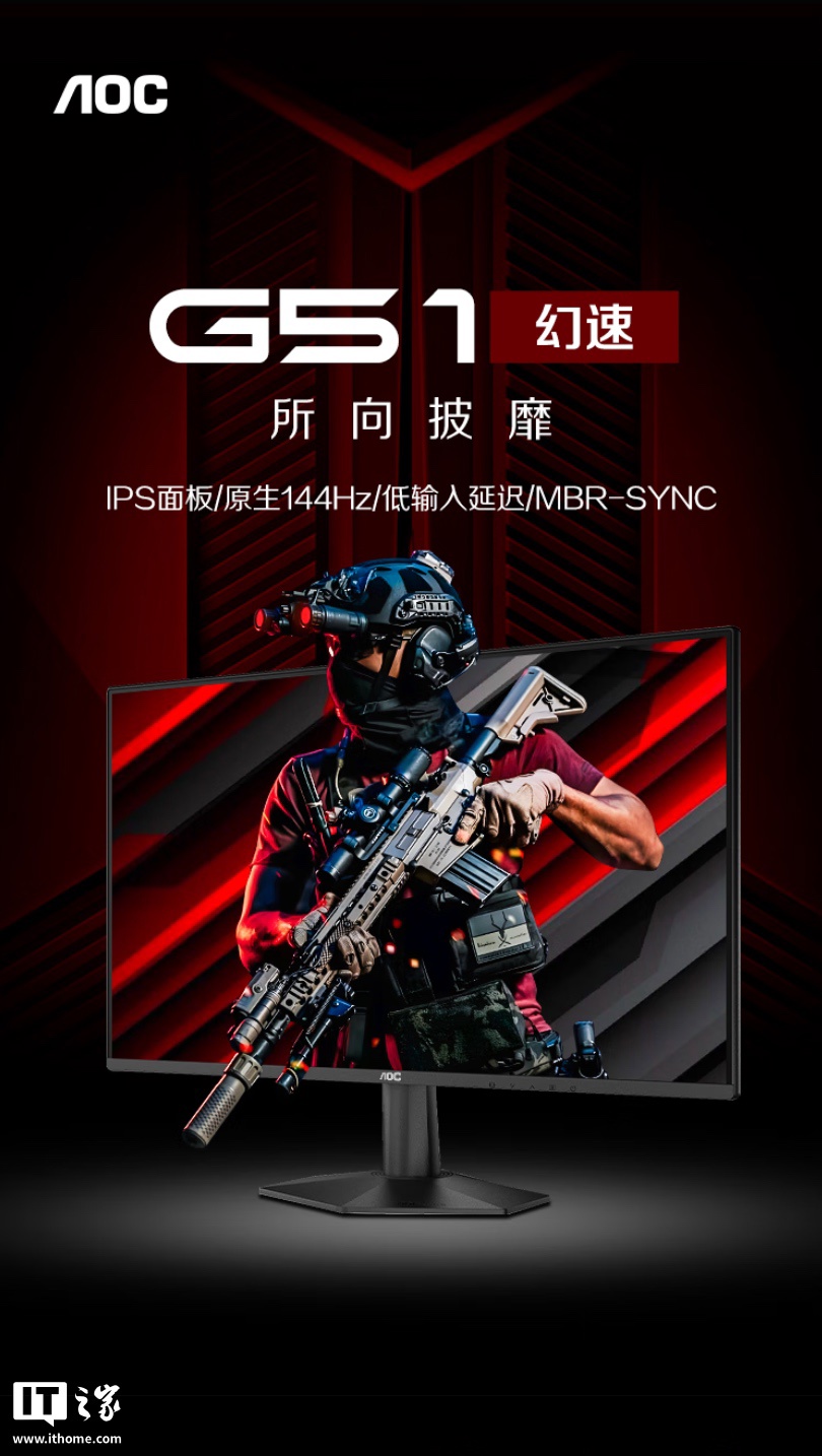 IT之家 8 月 1 日消息,AOC 现已在京东上架一款型号为“24G51F”的 23.8 英寸显示器,这款显示器主打“1080P 144Hz”,定价为 529 元。