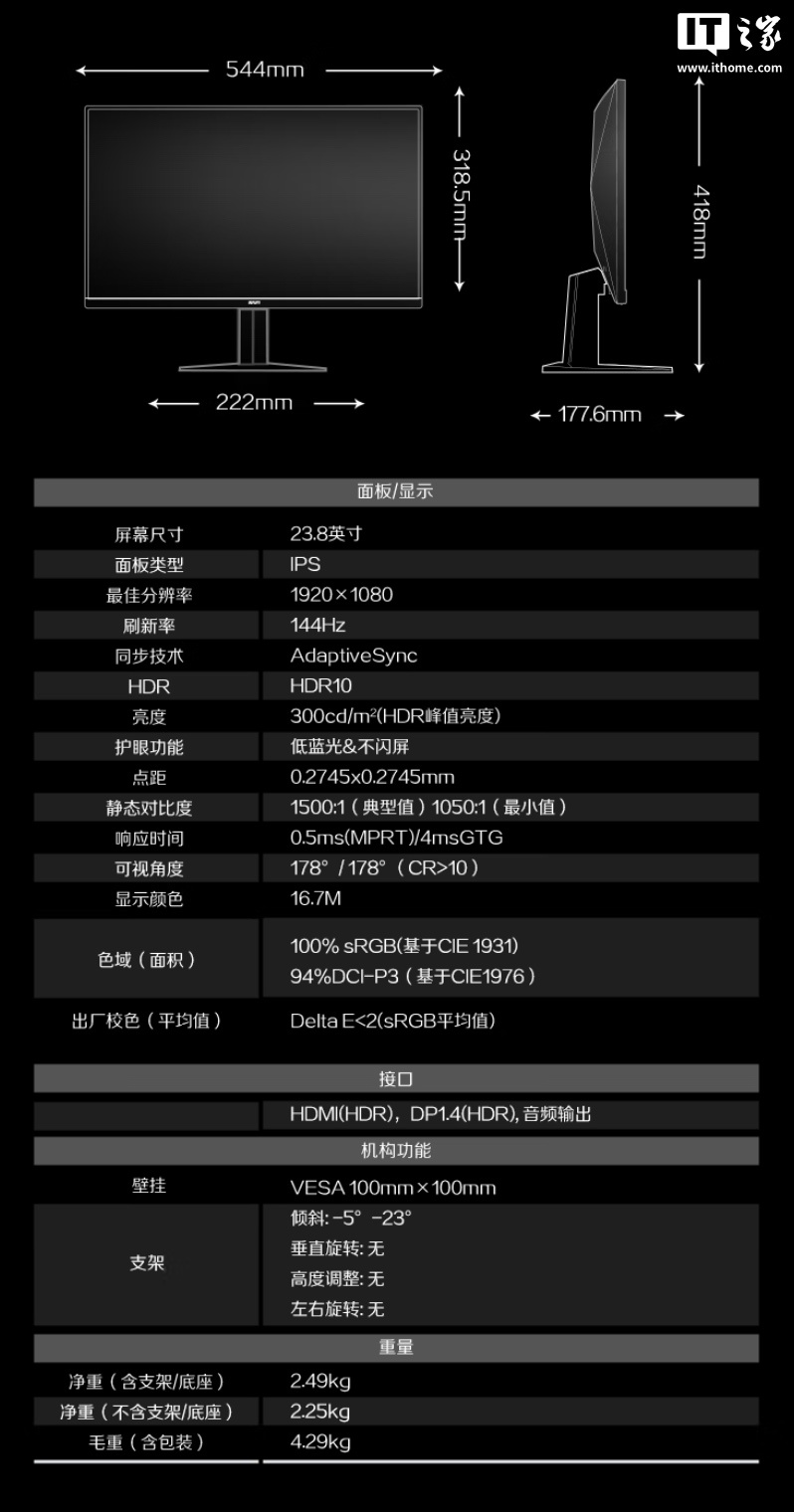 IT之家附显示器参数如下: