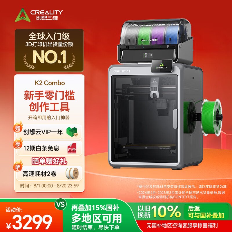 IT之家 8 月 1 日消息,创想三维宣布旗下全新 3D 打印机 K2 / K2 Pro 现已在京东开启预售,其中 K2 定位入门级,单机 2999 元但电商平台未在销售,Combo 套装定价为 3299 元;K2 Pro 定位专业级,单机首发价 5949 元,Combo 套装定价 6999 元。