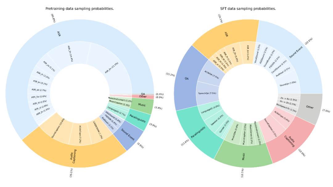 小米表示,不同于 Qwen2.5-Omni 等未公开训练数据细节的模型,MiDashengLM 完整公开了 77 个数据源的详细配比,技术报告中详细介绍了从音频编码器预训练到指令微调的全流程。