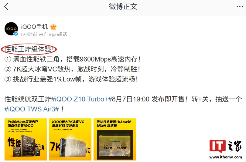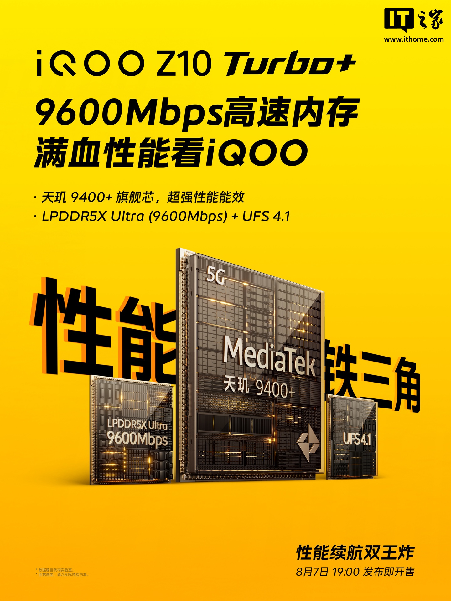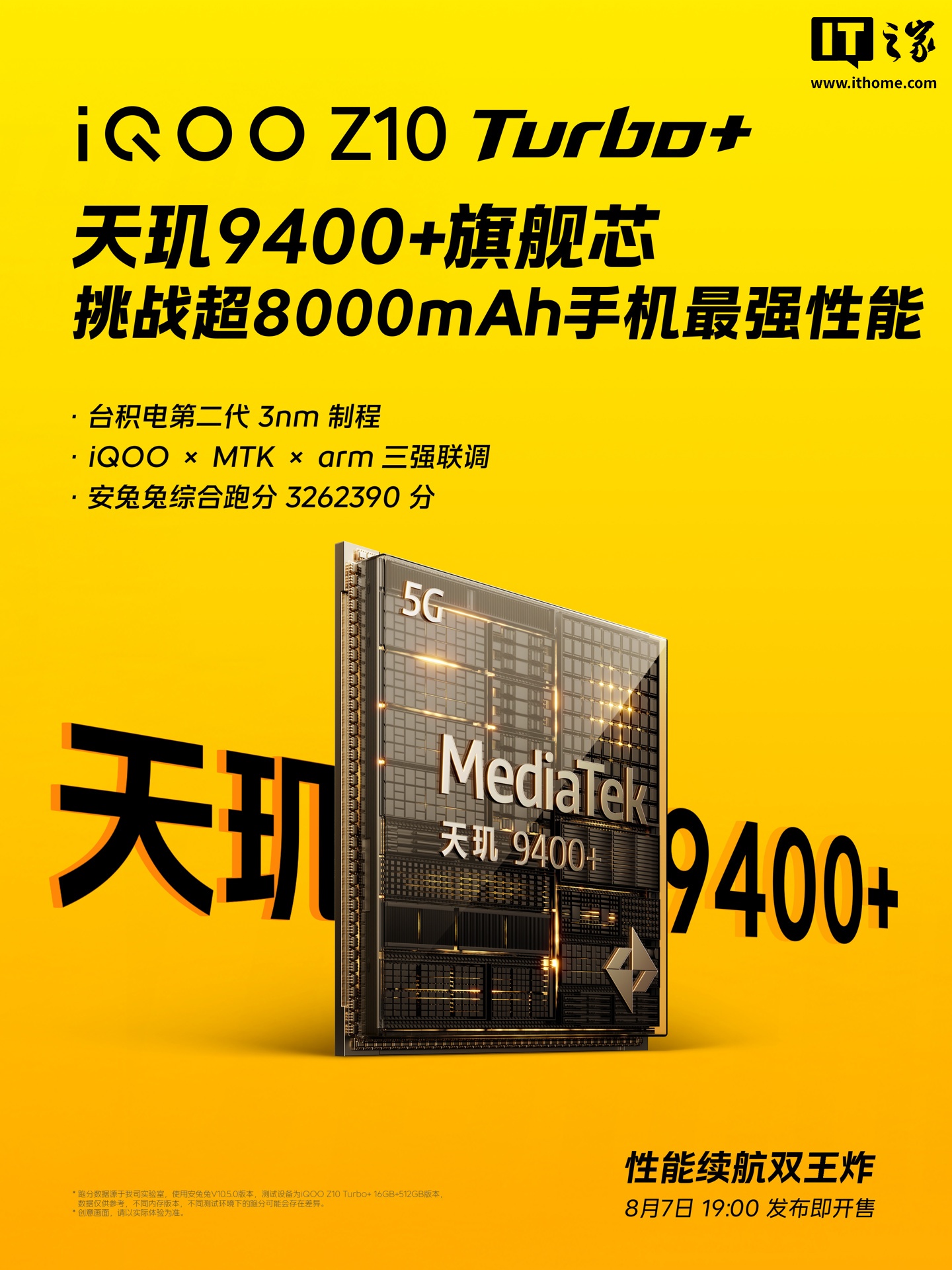 IT之家 8 月 4 日消息,iQOO Z10 Turbo+ 手机已官宣今年 8 月 7 日 19:00 发布即开售,号称“行业唯一 8000mAh & 天玑 9400+ 性能机”。