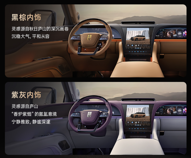 内饰方面,新车提供黑棕内饰 / 紫灰内饰、真木饰件,内置 Nappa 真皮座椅、天然纯羊毛脚垫。新车还拥有二排双行政零重力座椅,配备双智能扶手屏、双小腿托、右后脚托、双后排行政桌板、双无线充,支持一键舒躺模式、云卧观影模式、全平躺椅模式。