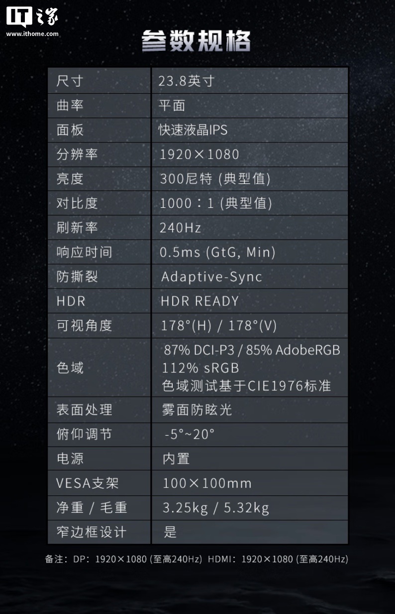 IT之家附显示器参数如下: