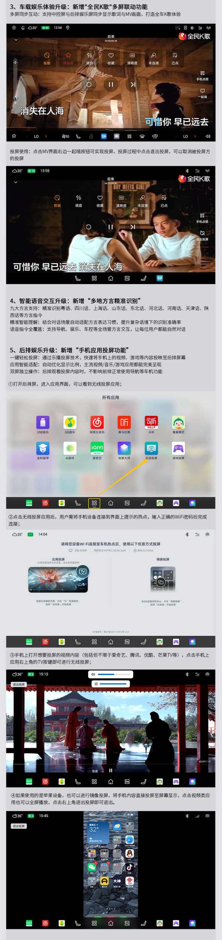 新增后排屏幕手机无线投屏功能