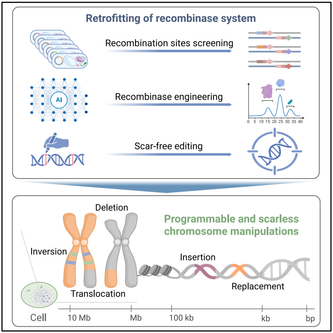 该技术在动植物中实现了从千碱基到兆碱基级别 DNA 的多类型染色体精准操纵,显著提升了真核生物基因组的操纵尺度和能力。