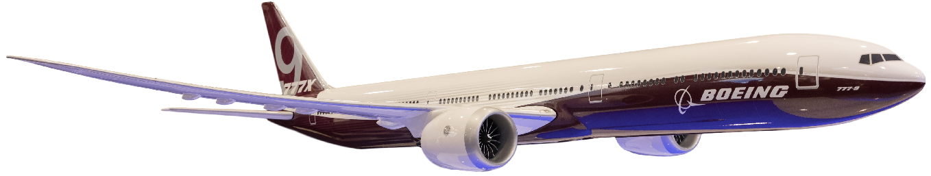 波音 777-9 飞机的重量与上代 777-300ER 相同,不过机身较长,可容纳多三排座位,且飞行距离增加了 220 海里(400 公里)。机舱内部宽度与 777-8 相同,三级舱等配置可以搭载 407 乘客,航程为 8,200 nmi(15,200 km)以上。