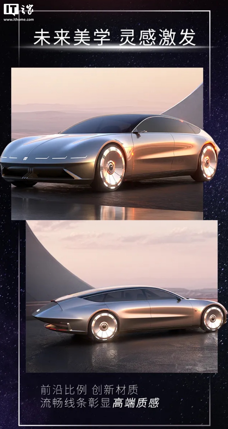 从外观来看,该车采用了具有未来感的科幻线条造型,整车几乎看不到开孔,尾部也采用了突出的线条设计,通过“Space”金属漆来打造“宇宙色彩”,整车对开四门采用剪刀设计。