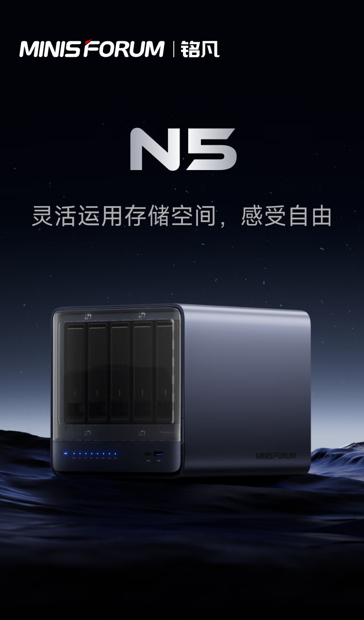 铭凡 NAS 迷你主机 N5 运行 MinisCloud OS 操作系统,支持 ZFS 文件系统、公网穿透、LZ4 无损压缩算法、Docker 容器化、AI 相册整理等功能。