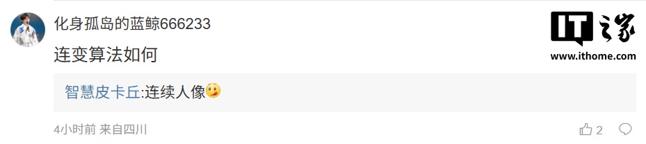 后续有用户在评论区询问:“16U 有磁吸镜头吗”?博主回复道:“磁吸目前不稳定”;另一位网友则询问:“连变算法如何”?博主则回复道:“连续人像”。