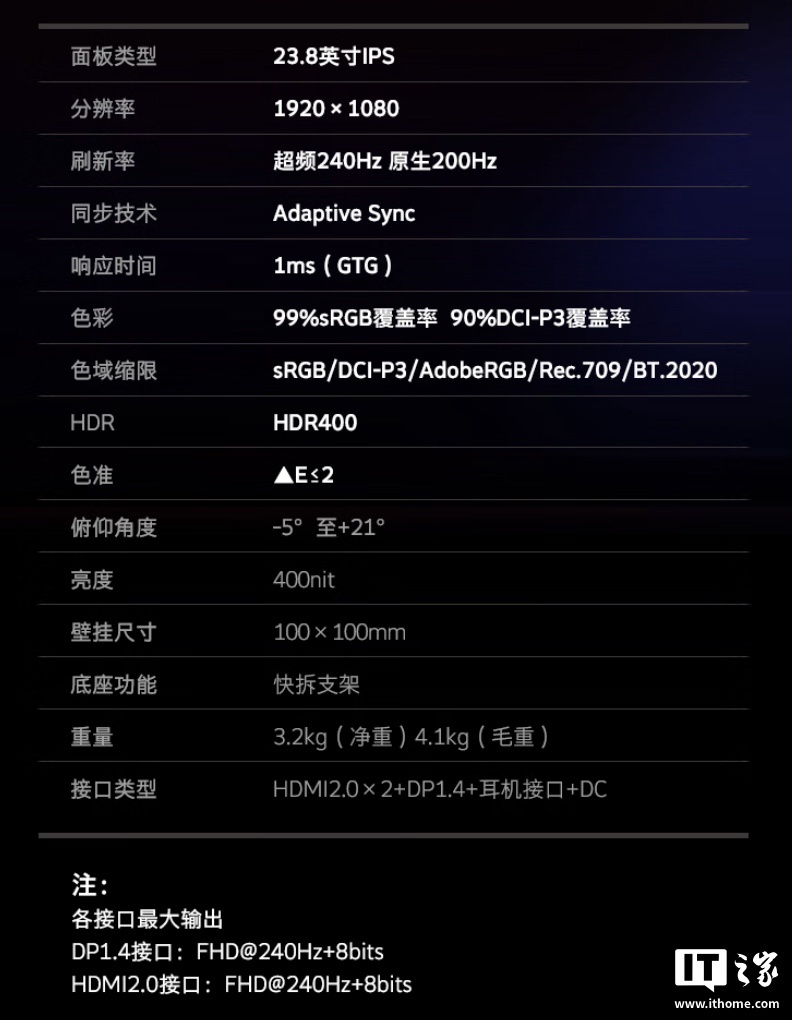 IT之家附显示器参数如下: