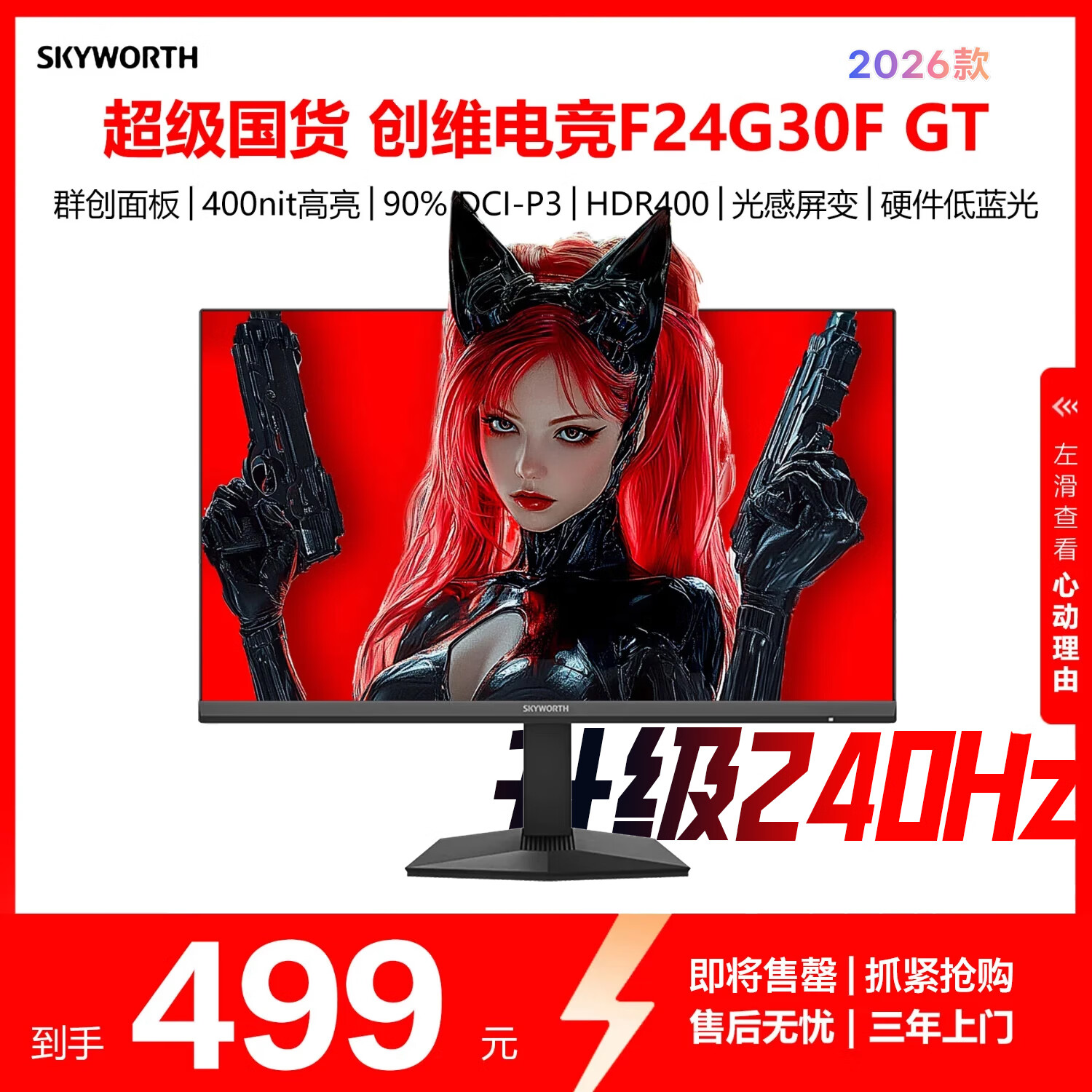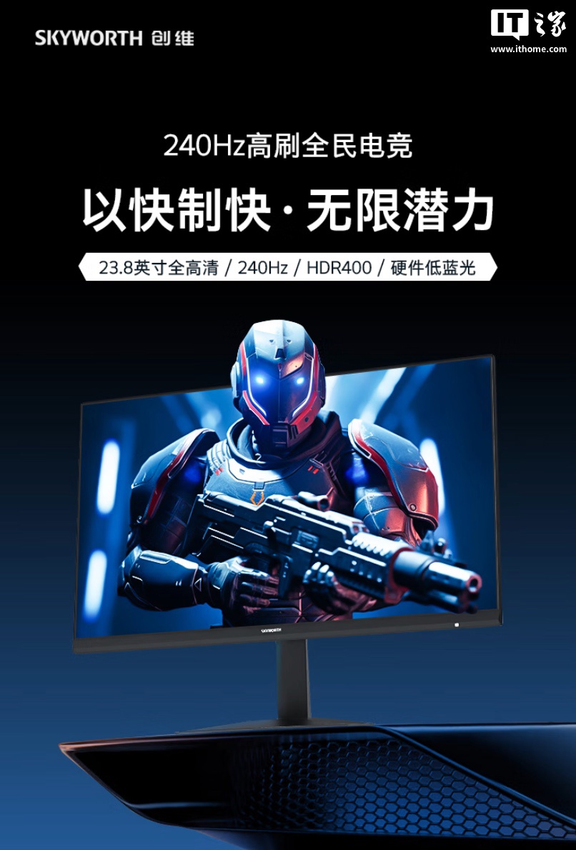 IT之家 8 月 6 日消息,创维现已在京东上架新款“F24G30F GT”23.8 英寸显示器,该机提供 1080P 分辨率,主要将刷新率从原生的 200Hz 升级至超频 240Hz(预计面板不变),价格不变依然为 499 元。