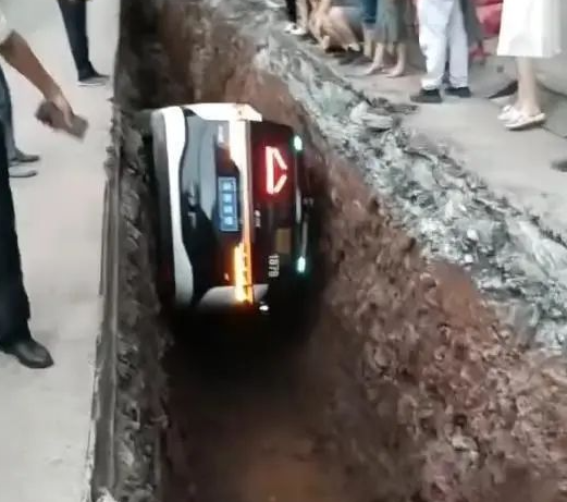 IT之家 8 月 7 日消息,8 月 6 日下午,多名网友发布视频称,重庆永川区内环东路附近,一辆萝卜快跑无人驾驶车在行驶中坠入市政施工沟槽。现场视频显示,车辆部分陷入坑内,车内女乘客在工作人员和群众帮助下脱困。