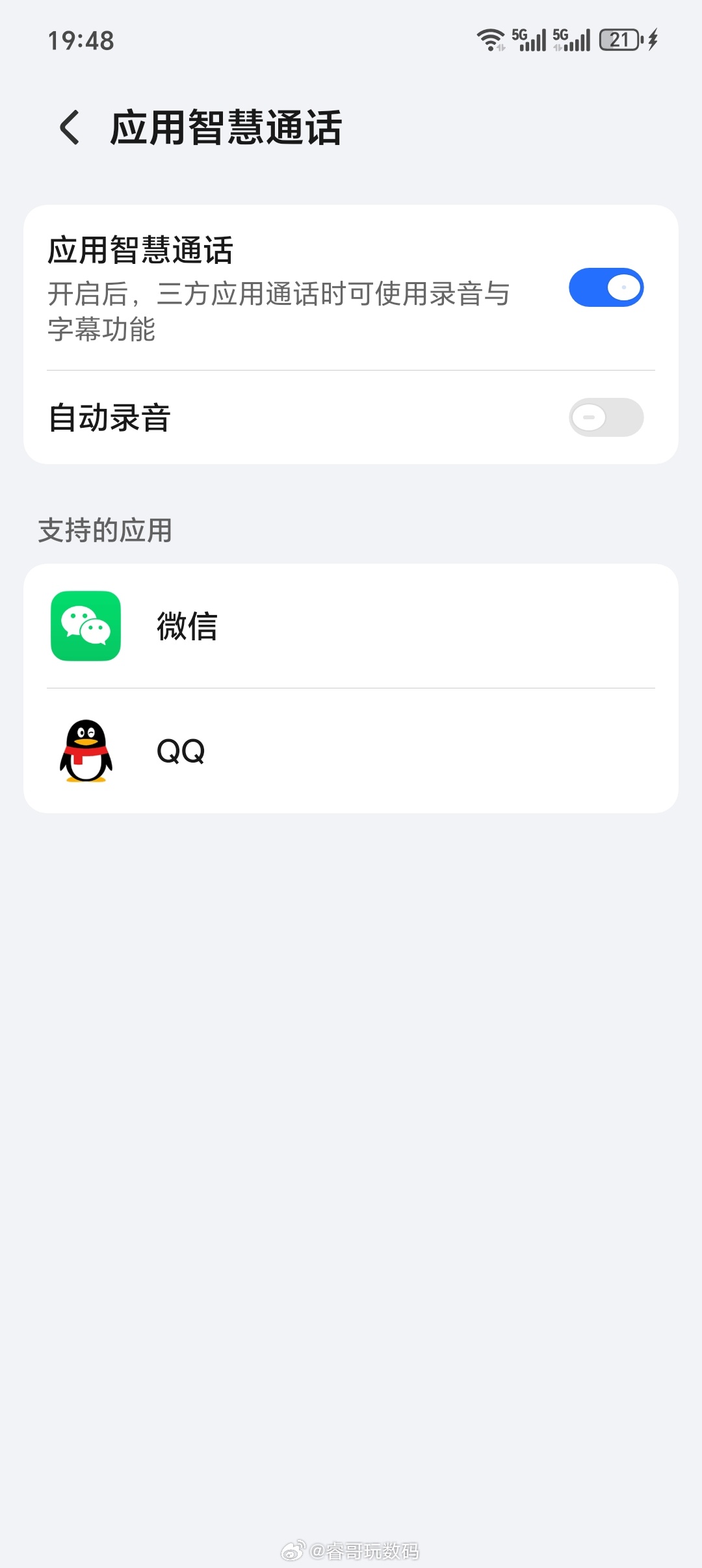据博主 @睿哥玩数码 分享,荣耀 MagicOS 系统的 AI 语音通话功能支持打字回复、AI 自动接听、自动生成 AI 通话纪要。该功能除支持系统来电外,还支持微信、QQ 三方应用智慧通话。