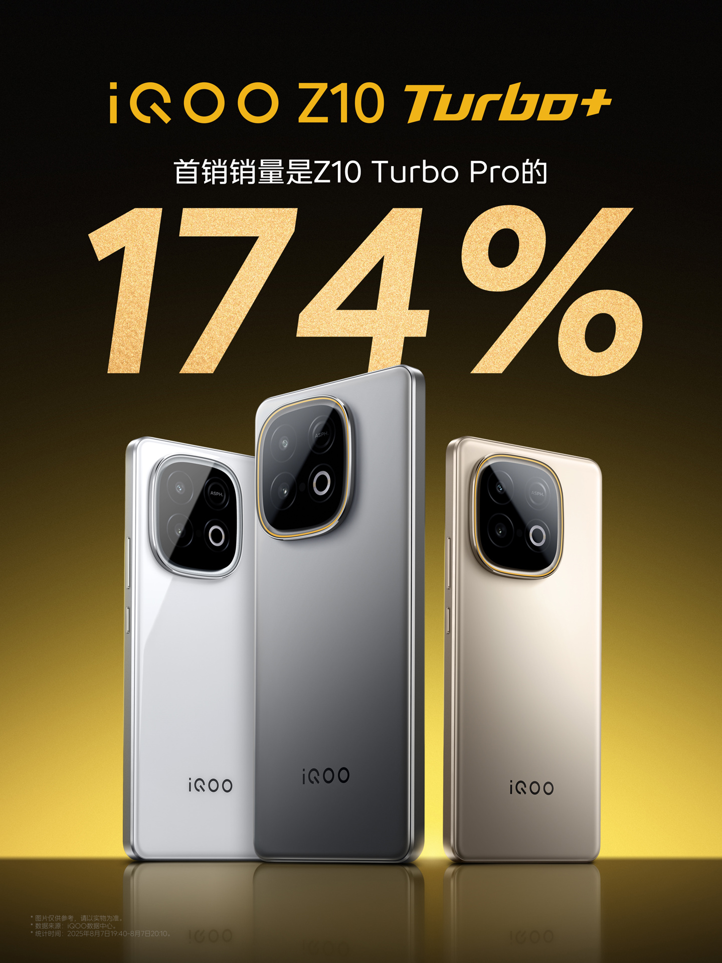 IT之家注意到,iQOO 手机官方今日发文宣布,Z10 Turbo+ 销量也是王炸,首销销量是 Z10 Turbo Pro 版的 174%(数据来源 iQOO 教据中心,统计时间为 2025 年 8 月 7 日 19:40-8 月 7 日 20:10)。
