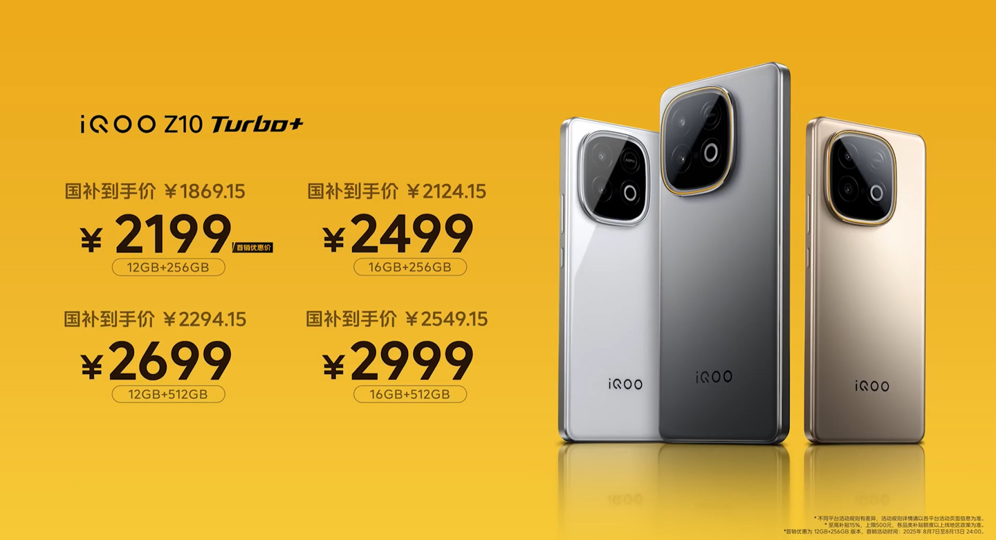 IT之家 8 月 7 日消息,iQOO Z10 Turbo+ 手机今晚正式发布,新机搭载 8000mAh 电池、天玑 9400+ 处理器,售价 2199 元起,叠加国补售价 1869.15 元起。