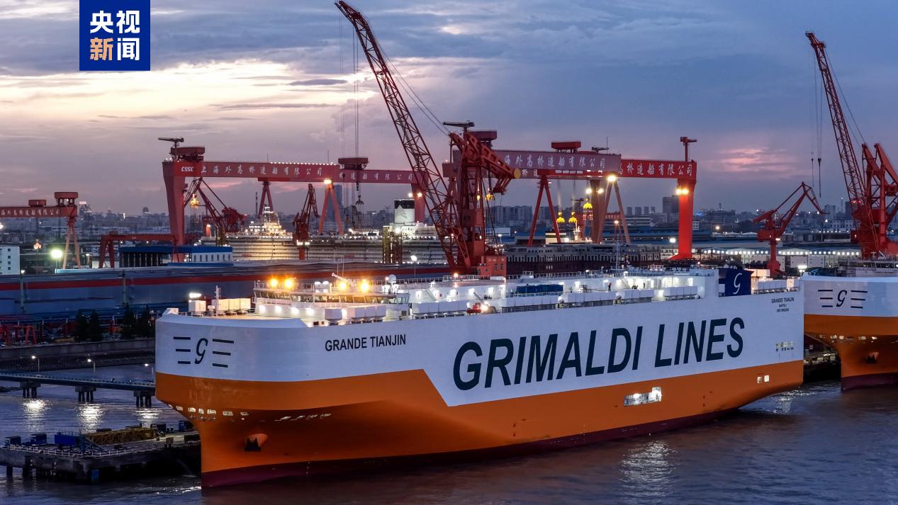 以上图源:央视新闻此次交付的“GRANDE TIANJIN”号具备 9000 车标准装载能力,可兼容电动车、传统燃料汽车及重型滚装货物。该船采用新型低油耗主机、节能装置,显著降低能耗,实现靠泊零碳排放,并获得意大利船级社“氨燃料预留”认证,为未来零碳燃料改装预留技术空间。