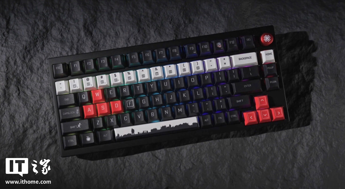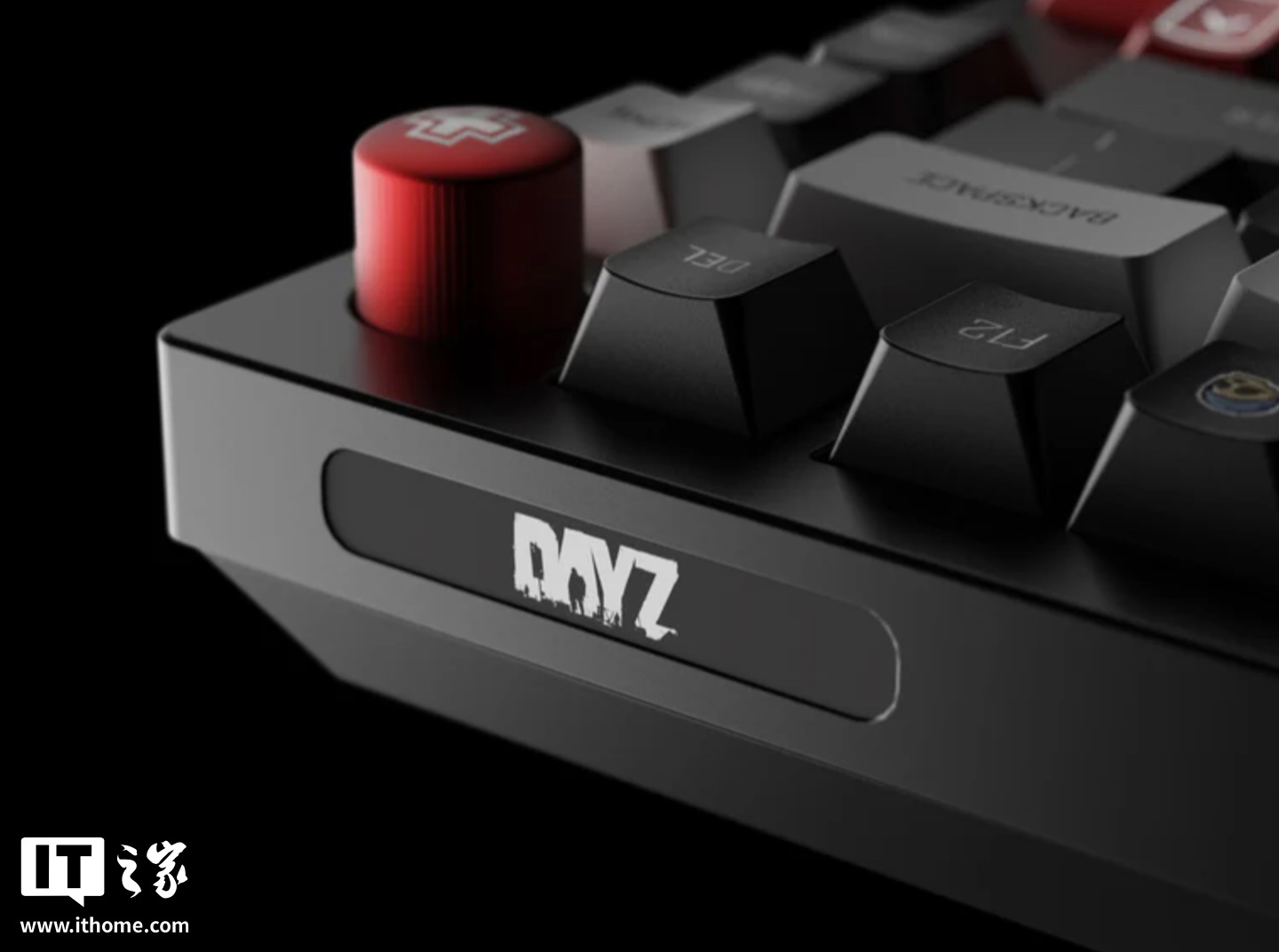 与常规版本相比,这款《DayZ》特别版在保留原本霍尔效应键盘优势的基础上加入了限定键帽和金属旋钮。其整体采用 75% 配列设计,配备北向单键 RGB 背光,提供黑 / 白 / 红三色 Cherry 高度热升华 PBT 键帽,号称设计灵感来自游戏内 UI 与美术风格;键盘侧面和底部同时带有《DayZ》联名铭牌。