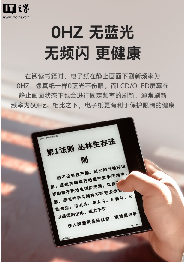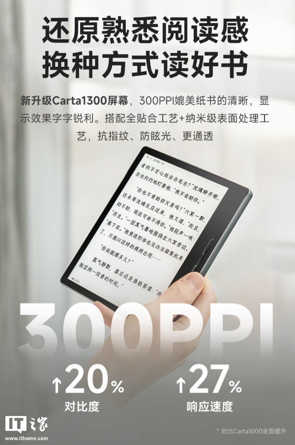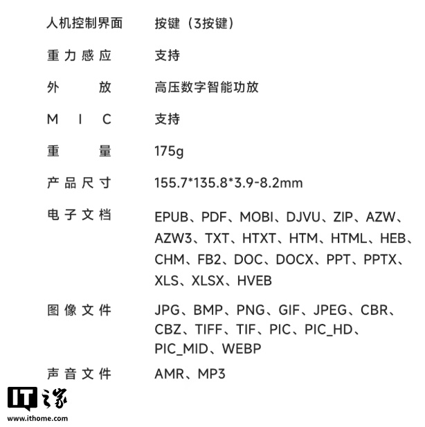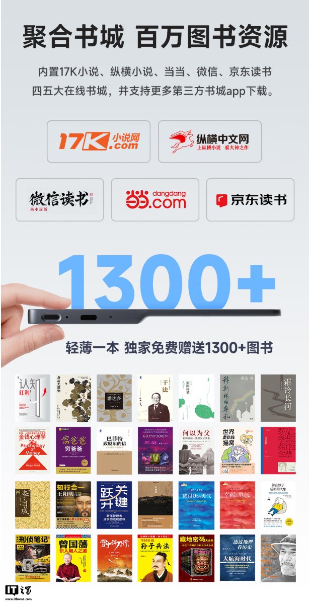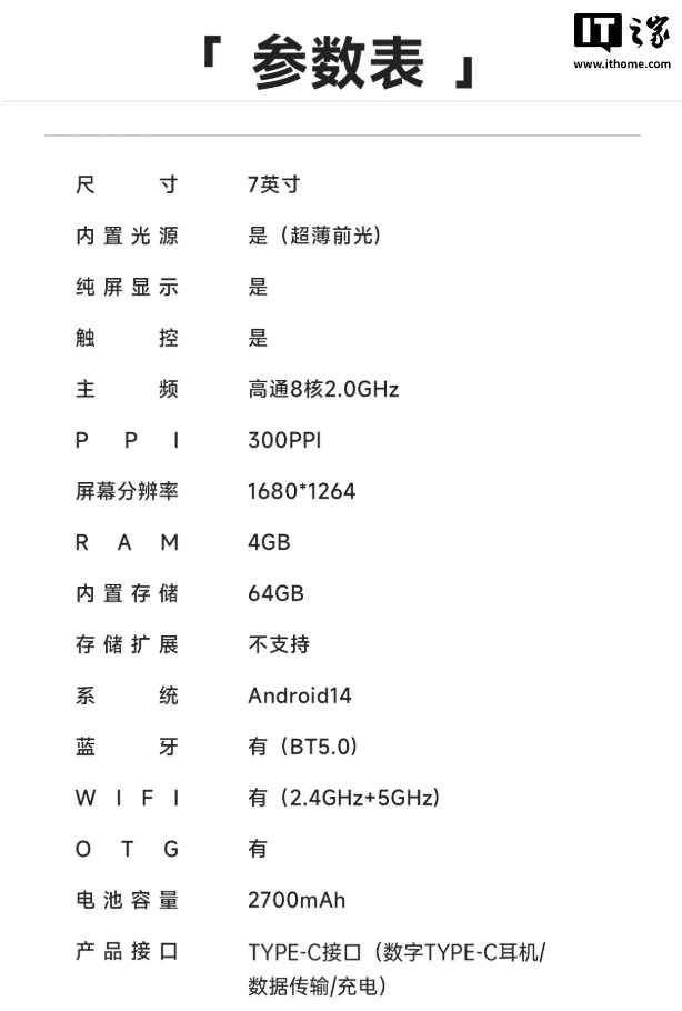 IT之家附该电纸书详细参数如下:
