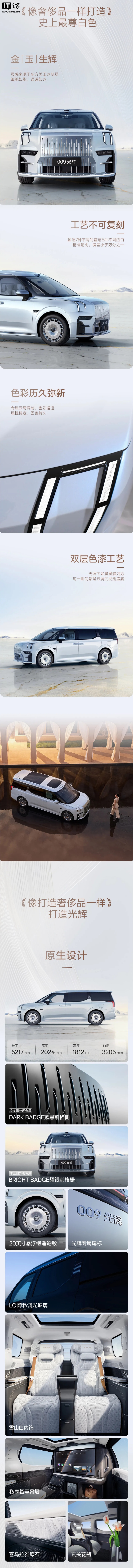 IT之家 8 月 9 日消息,极氪 009 光辉 MPV 冰玉白现已开启首批交付,知名赏宝博主“听泉赏宝”成为首位光辉「全家桶」车主。