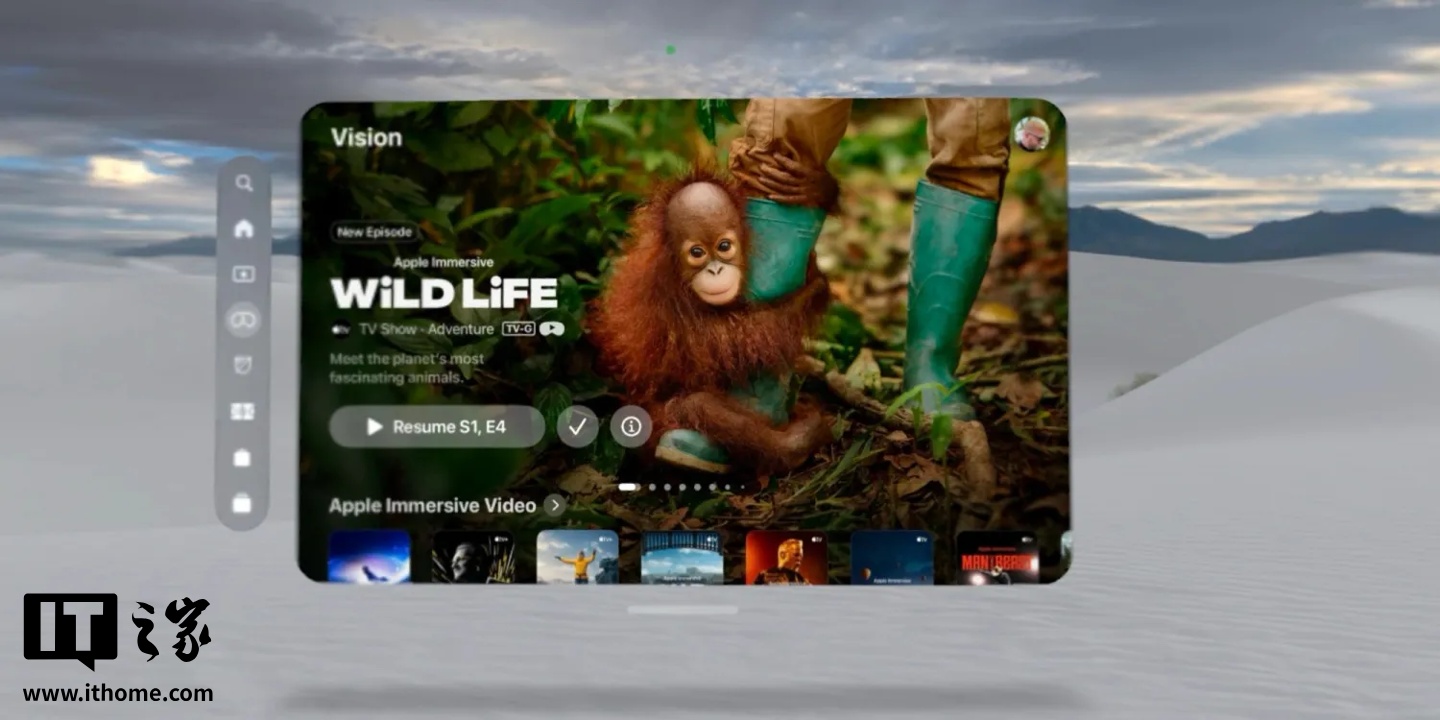 IT之家 8 月 10 日消息,苹果公司已在 Apple Vision Pro 上发布了沉浸式视频系列《野生世界》(Wild Life)的第四集。该集名为《猩猩》(Orangutans),已于 8 月 8 日(星期五)上线,用户可通过 visionOS 系统的 TV 应用免费观看。