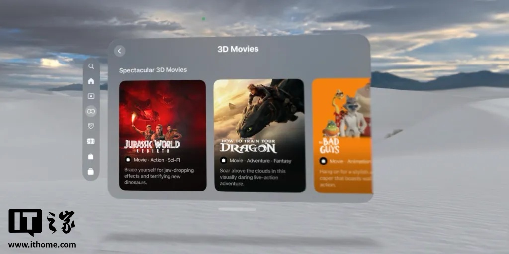 IT之家注意到,除《野生世界》外,Apple Vision Pro 近期还上架了多部 3D 影片,包括《侏罗纪世界:重生》和《驯龙高手》。备受期待的《碟中谍:最终清算》将于 8 月 19 日登陆该平台商店。