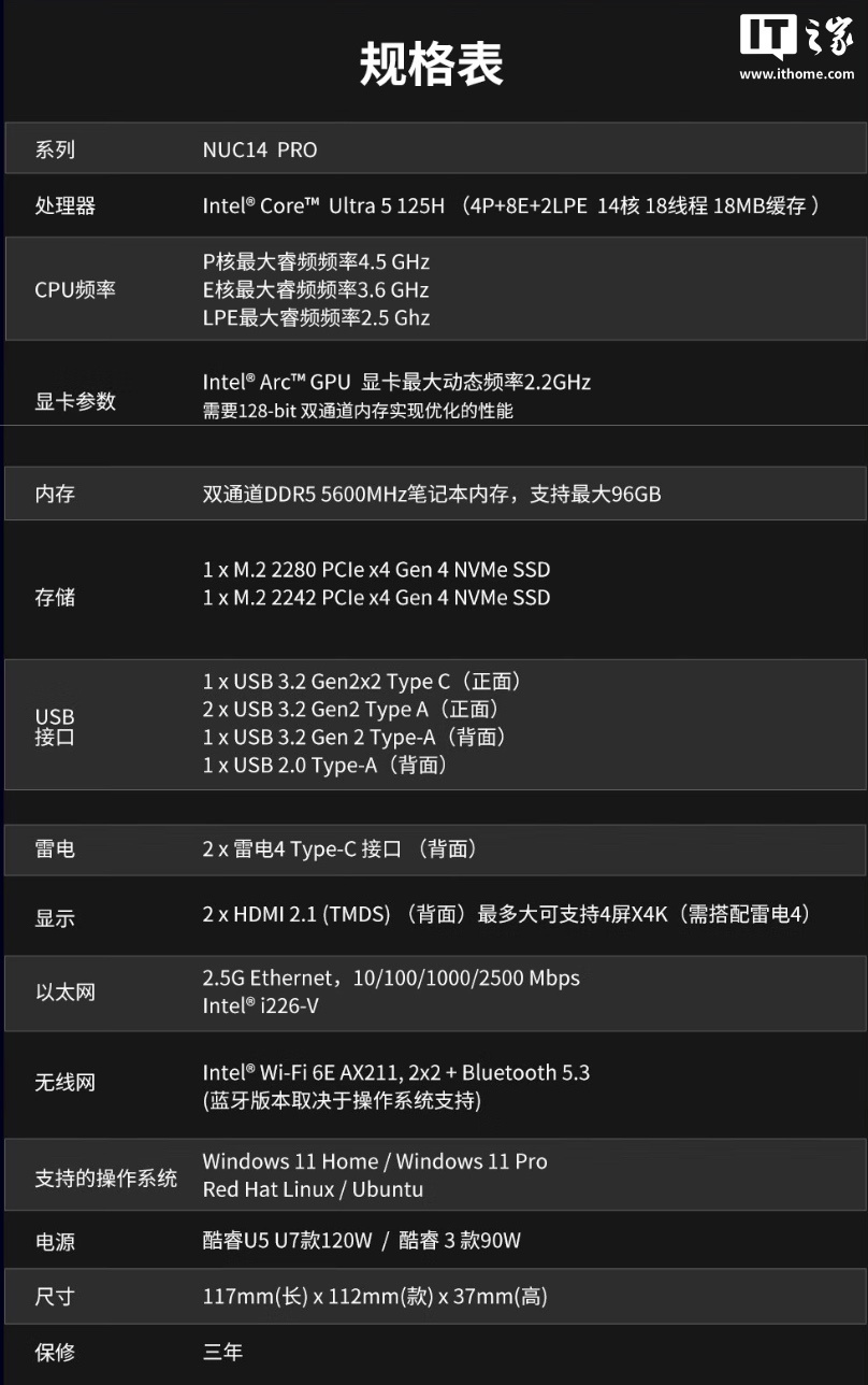 IT之家附该迷你主机规格如下: