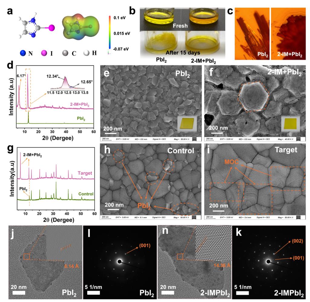 针对这一挑战,昆明理工大学研究团队提出了创新解决方案。他们通过在钙钛矿前驱液中引入一种含碘的有机分子,使其与残留碘化铅原位反应,形成具有六边形层状结构的稳定化合物。这种化合物不仅能有效钝化晶界缺陷,还能抑制离子迁移和相分离,显著提升电池的电荷传输能力。
