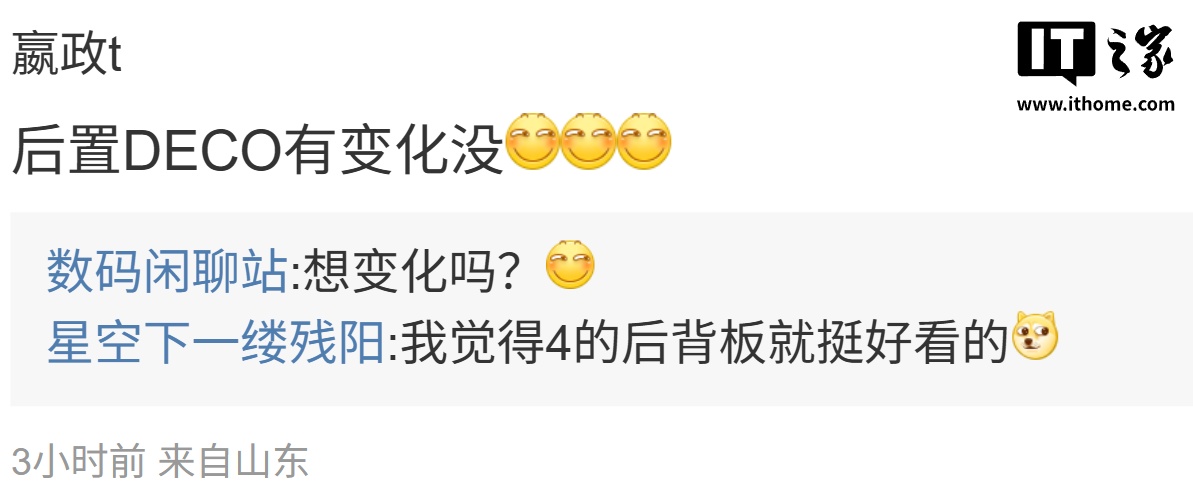 后续有用户在评论区询问:“后置 Deco 有变化没