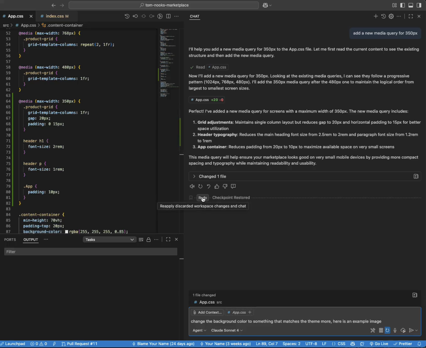 其他更新方面,新版 VS Code 引入“聊天检查点”功能,也就是为用户提供了“还原点”后悔药,可快速将 AI Agent / 用户自身大幅修改的文件恢复到指定节点。