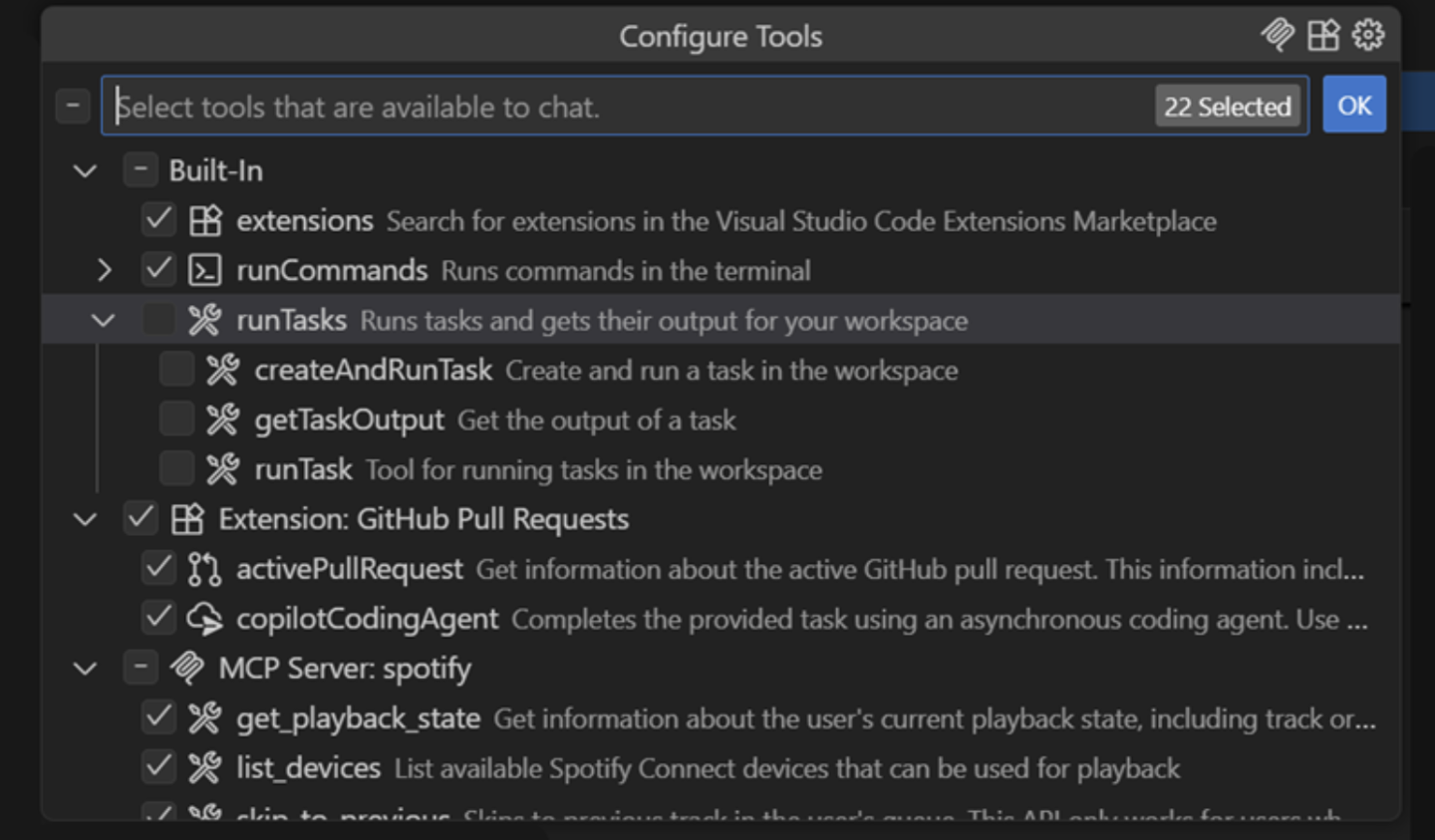 微软同时为“工具选择器 (Tool picker)”改用 Quick Tree 树状界面,当工具数量超出上限时会自动分组,并由模型决定调用的工具组,从而在大型工具集下依然保持高效操作。