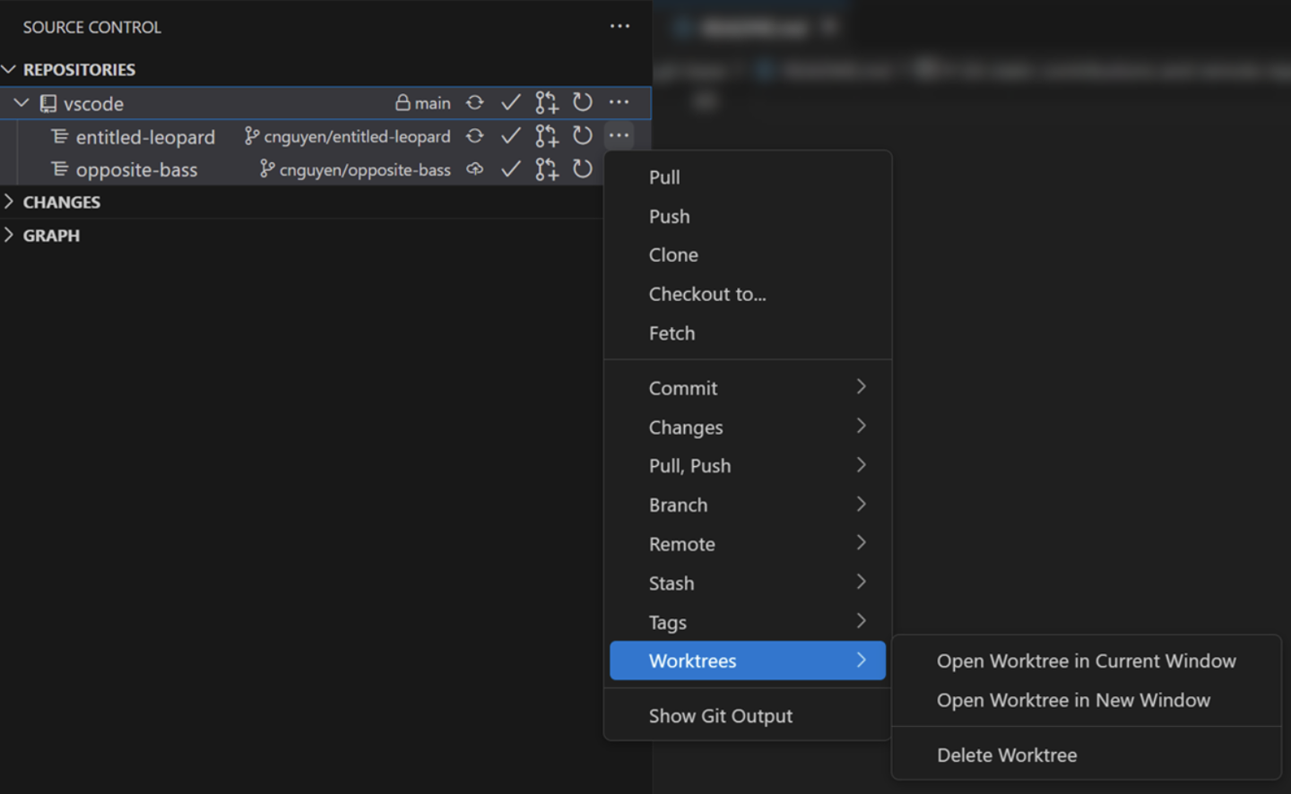 VS Code 还新增支持自动检测 / 管理“Git 工作树(Git worktree)”功能,可在 Source Control Repositories 视图中清晰显示仓库、子模块与工作树的层级结构,方便用户同时进行多分支开发。