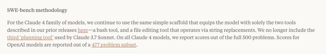 对于 Claude 4 系列模型,他们继续使用相同的简单框架,该框架仅为模型配备了两种工具 —— 一个 Bash 工具和一个通过字符串替换进行文件编辑的工具,并且不再包含 Claude 3.7 Sonnet 中使用的第三个“规划工具”。